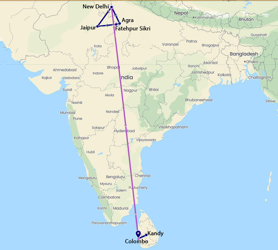 Delhi - Agra - Jaipur - Colambo - Kandy - Bentota